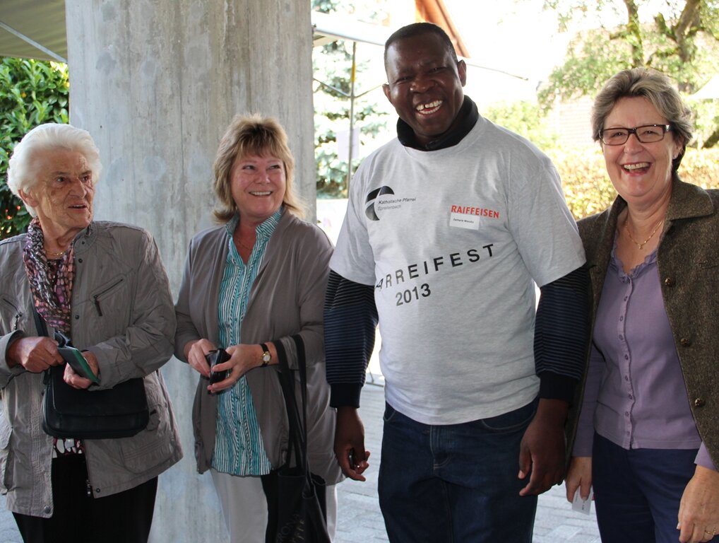 Derweil die einen tanzen, das Trommelspiel erlernen oder malen, ist der 7-jährige Nils am Basteln. Er setzt gerade einer kleinen Styroporkugel etwas Goldhaar auf. «Ich mache einen Engel», sagt er voller Stolz. Auch er verweilt nicht nur an diesem Stand, sondern eilt weiter zur Wiese, auf der das Fussballturnier stattfindet. «Ich finde es schade, dass nicht mehr Erwachsene und Kinder zu den Workshops gekommen sind», sagt Zacharie Wasuka mit etwas Enttäuschung in der Stimme. «Mit unserem Pfarreifest-Motto «Kommt und seht» möchten wir ein Zeichen setzen», betont er. Man wolle zeigen, dass Glaube, Religion und Kirche nach wie vor eine Bedeutung hätten. «Die Kirche lebt», unterstreicht der Pfarrer denn auch kraftvoll. Dass sie lebt, das zeigte sich auch an verschiedenen Ständen, an denen man sich etwa zum Religionsunterricht, zum Lektoratsdienst oder über die italienische Gebetsgruppe informieren konnte.