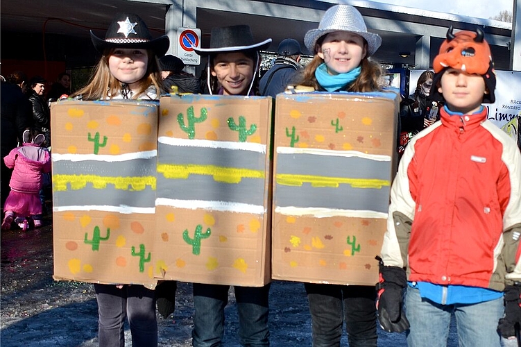Ein Blick auf die Kostüme der Kinder konnte das bestätigen:Kreative Kartonbauten und aufwändige Masken als Hommage an die legendäre amerikanische Strasse wurden sichtlich stolz zur Schau getragen. Prinzessin und Co durften natürlich auch nicht fehlen. Einen kleinen Wermutstropfen gab es dennoch: «Die Fasnacht fällt dieses Jahr in die Schulferien, darum sind weitaus weniger Kinder da als in den vergangenen Jahren», so Nadja Mensch. Das tat allerdings der Freude der daheimgebliebenen kleinen Fasnächtler keinen Abbruch. Sie tanzten im Anschluss an den Umzug in der Boostockhalle ausgelassen im Rhythmus der «Bräusi-Vögel-Guggemusig».