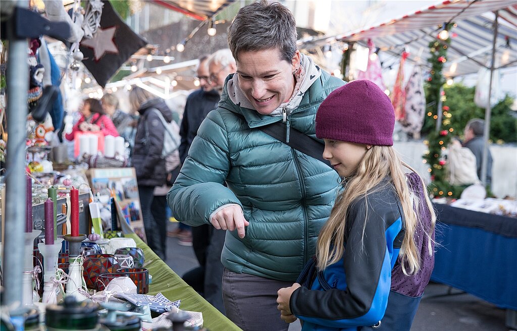An über 50 Ständen verkauften Hobbybastler, Vereine, Schüler und Gewerbler zwischen dem Chileweg und der Mühlegasse ihre Produkte. Dabei konnten sich die Besucher gleich mit den ersten Weihnachtgeschenken eindecken: Von Adventsdekoration über Holzfiguren bis hin zu Spielsachen war alles auf dem Markt zwischen Chileweg und Mühlegasse zu finden.