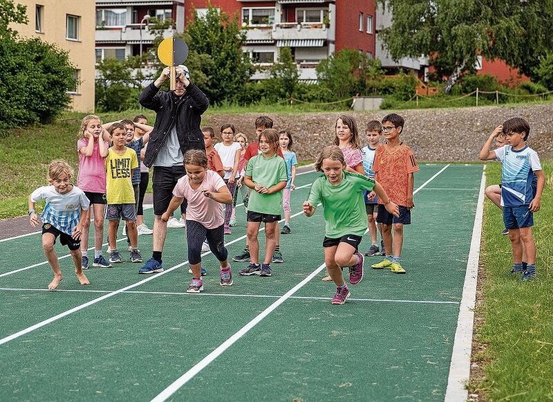 «Hopp, hopp, hopp», hörte man vom Rand her rufen, als vier Kinder in schnellem Tempo über die grüne Laufbahn sausten. Begleitet von Jubelrufen der Eltern und Gspänli am Rennrand kämpften die Kids gegen die Zeit. Ein kurzer Blick zur Seite, bevor noch einmal alle Kräfte mobilisiert wurden, um als Erster über die Ziellinie zu rennen.